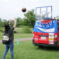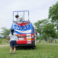 本日開催したイベントは、「バスケットボール DE ミニゲーム」と「スラックラインに挑戦!」の二つのスポーツイベント。