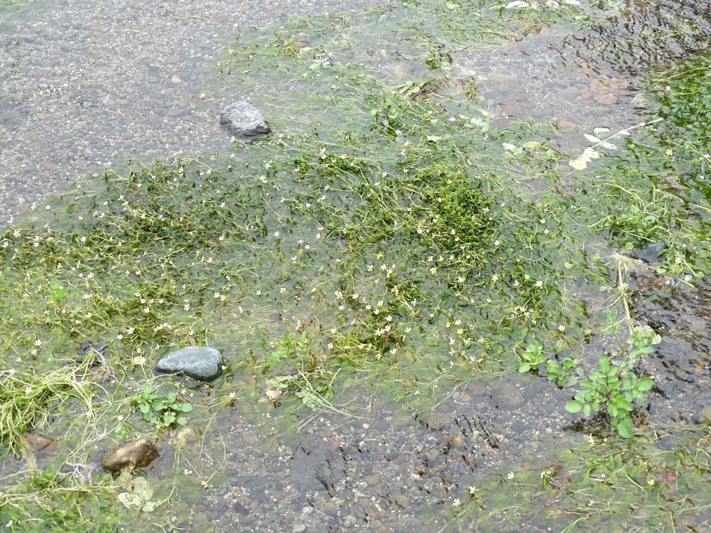 公園内の水路では、ヒメバイカモの花が咲いています。