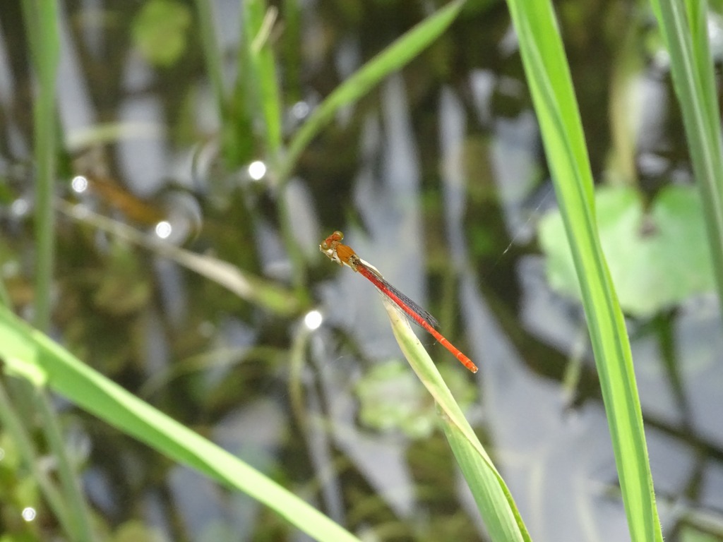 江津湖の水辺ではベニイトトンボを見ることができます。