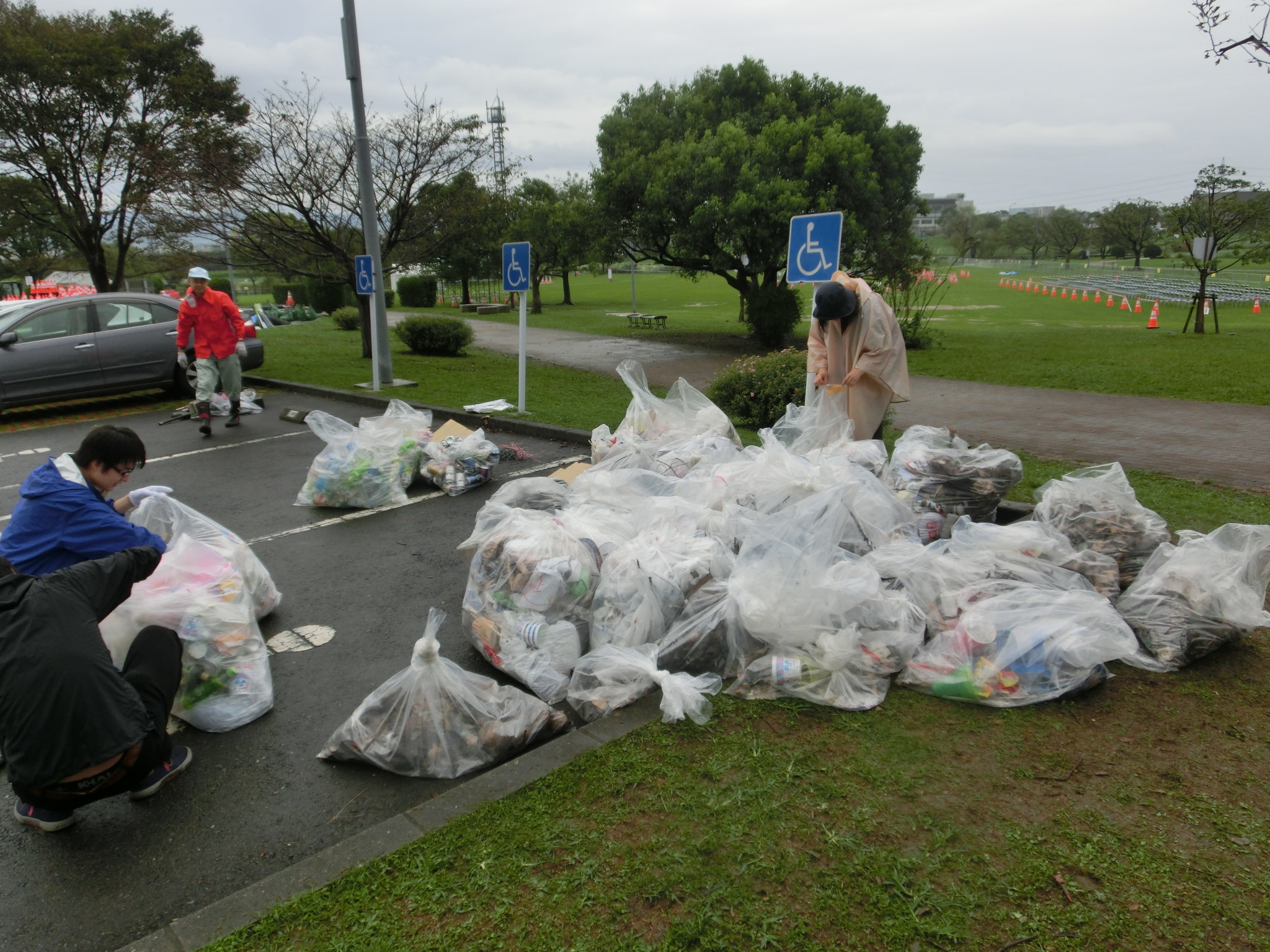 広木地区では、観覧場所だけでなく打ち上げ会場周辺でも清掃が行われ、きれいな江津湖・きれいな公園でまた来年も実施できるよう参加者が一体となって清掃が進み、あっという間にたくさんのゴミが集まりました。