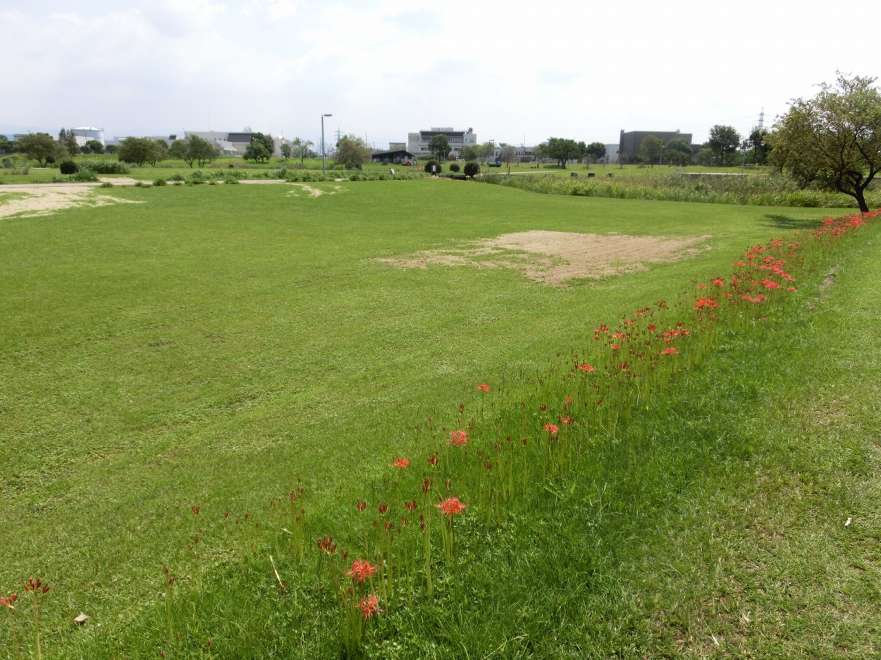 9月初旬の記事では上江津湖のヒガンバナを紹介しましたが、この連休は一番規模が大きい広木地区の湖岸一帯で見頃を迎える予定です。9/18(金)現在の写真ではまだ半数がつぼみの状態ですが、連休中に咲く見込みです。芝生の広場も連休に合わせて草刈りを行いましたので、芝生でお弁当を広げて花を楽しんでみてはいかがでしょうか。