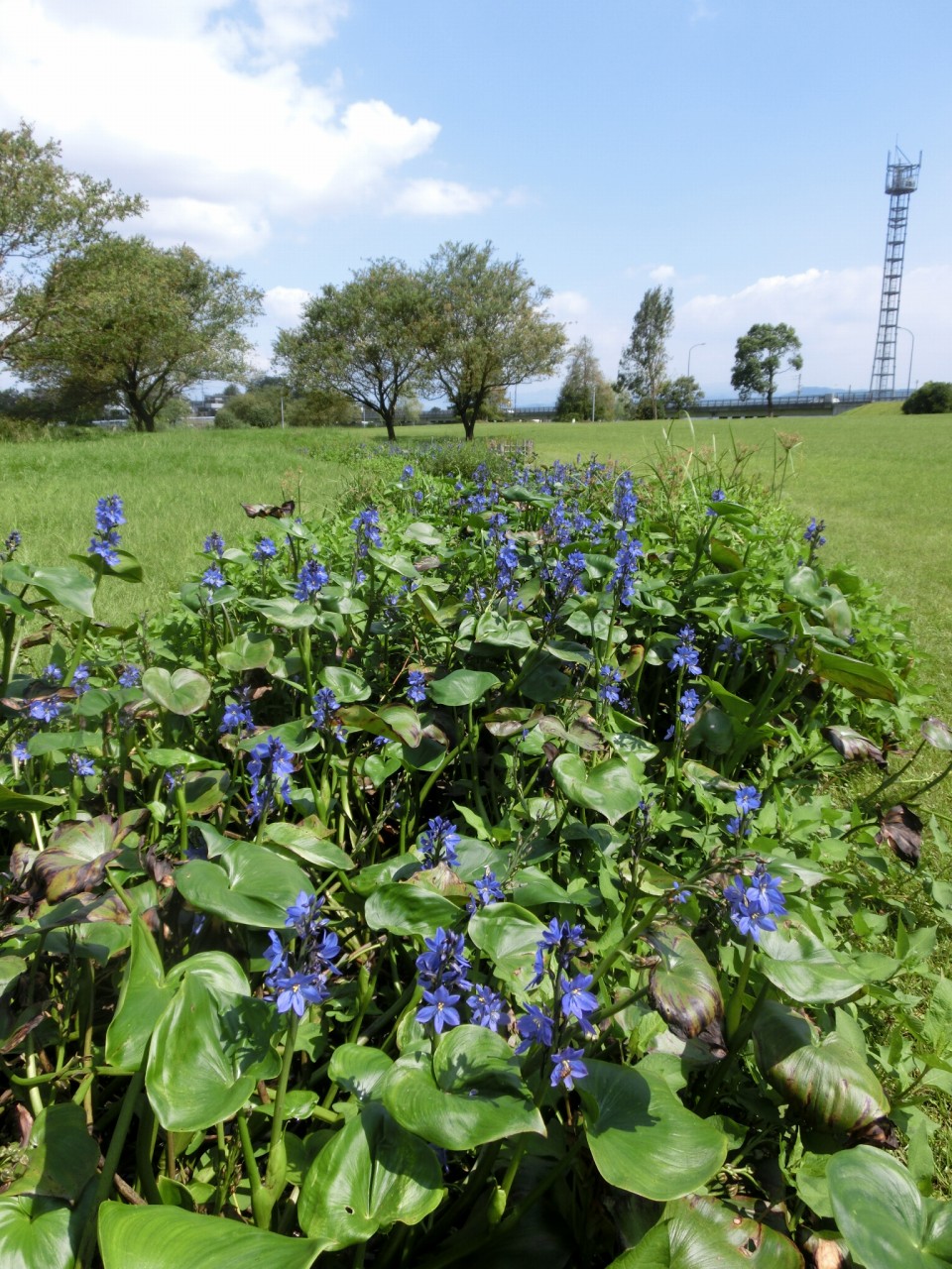 広木地区の駐車場前にある池や自然観察園(木道)では、ミズアオイの花も見ごろを迎えています。2か所で約2000株の花々が楽しめます。9/11の記事でも紹介しておりますが、県内の生息地も江津湖と秋津川(益城町)の2か所だけとなっています。