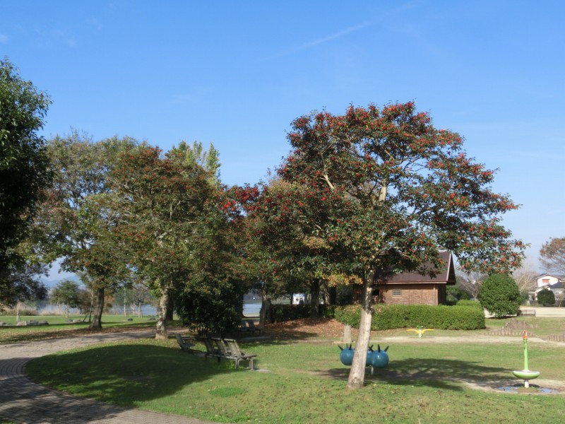 広木地区にある管理事務所の前にクロガネモチの木が数本あり、木全体に真っ赤な実が実りました。