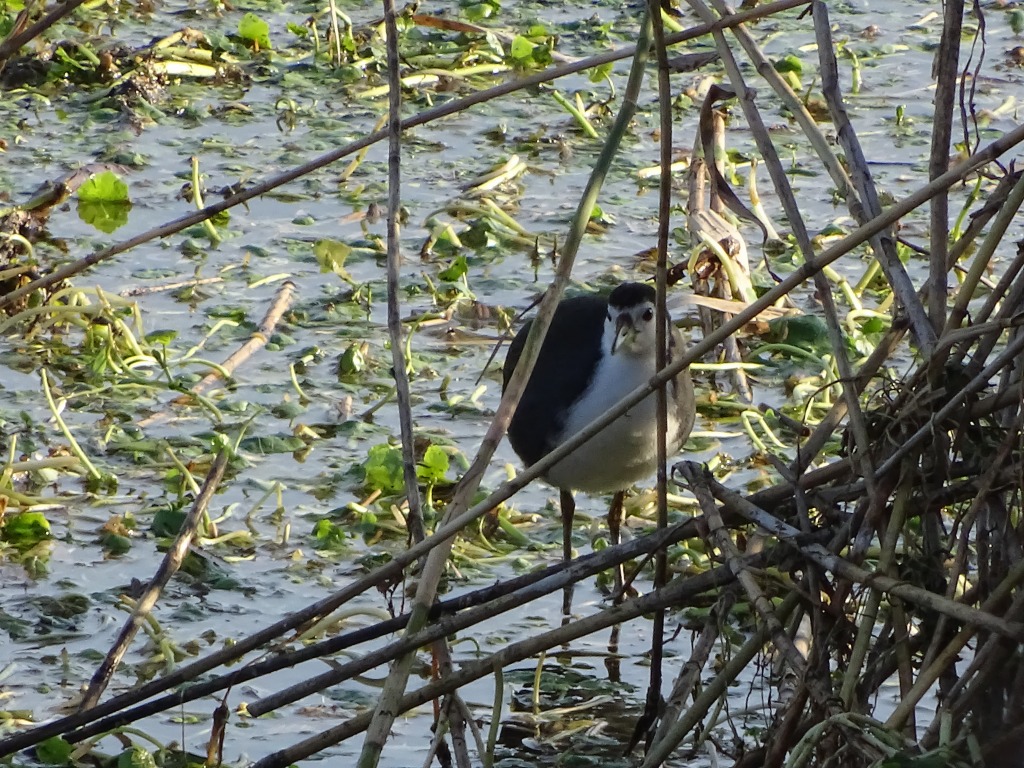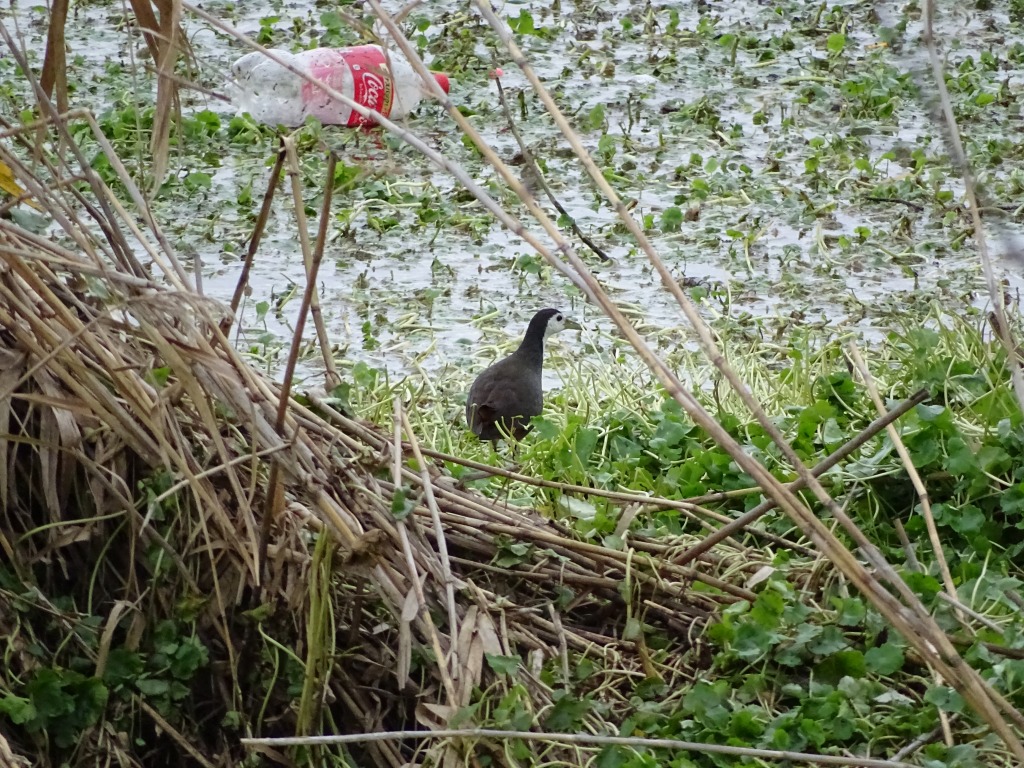 上の写真では分かりにくいですが、野鳥のバンに似ていて、顔から腹にかけて白い野鳥がそうです。