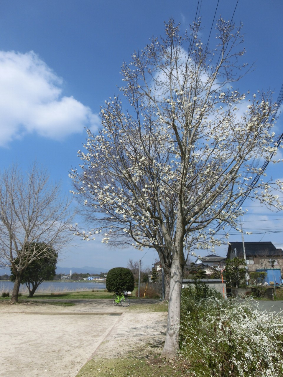 広木地区にある小さなグラウンドにはコブシがあり、現在見ごろをむかえています。コブシは上江津湖の市民病院側駐車場の入口をはじめ、様々な場所でご覧いただけます。