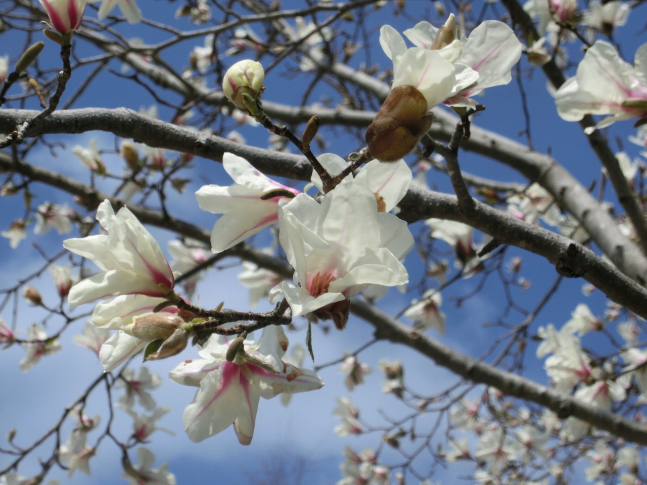 コブシはキョウチクトウ化の落葉樹木で、毎年3月に開花します。名前の由来は「つぼみの形が拳に似ているから」や「花の後にできる実が拳のようにボコボコしているから」など諸説あるようです。