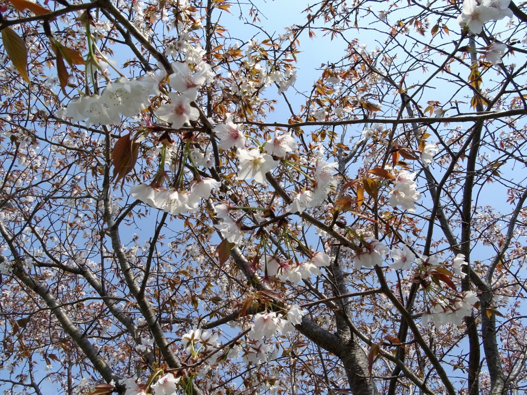 江津湖のサクラは今、赤いツボミと白い花びらが半々くらいで、ちょうどきれいな時期かもしれません。