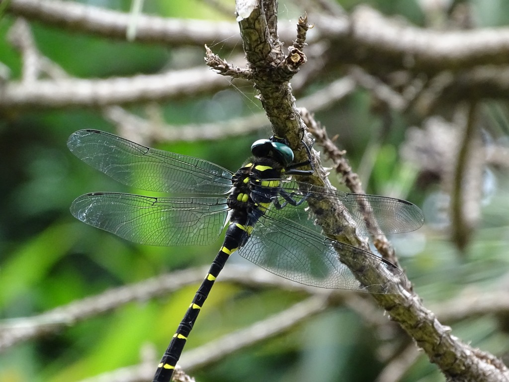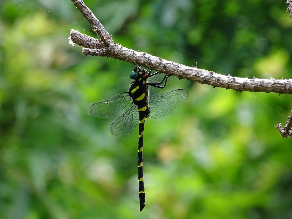 普段は水の上を優雅に飛んでいるオニヤンマ、今日は珍しく枝にぶら下がって休んでいました。