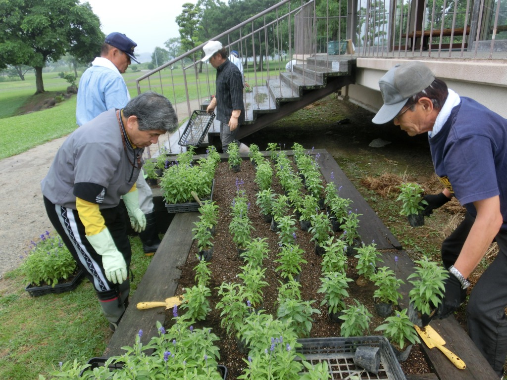 今日水前寺江津湖公園広木地区で、熊本市隊友会様の協力の下、花壇の植え替え作業を行いました。