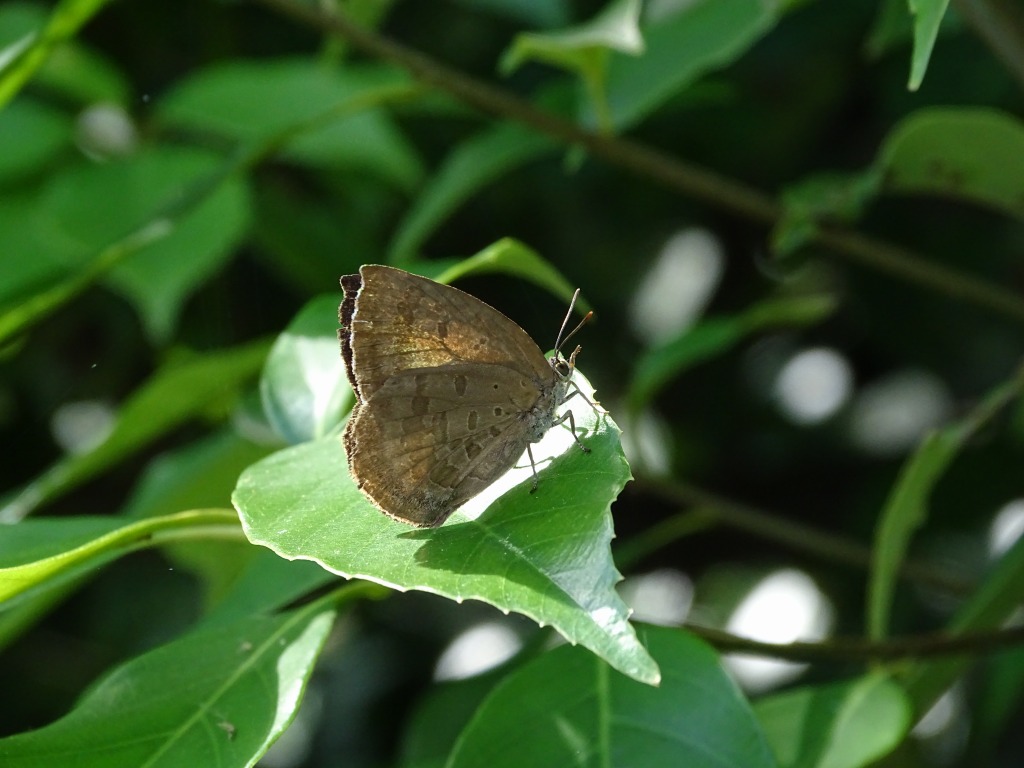 翅の裏面は地味ですが、表面は紫色に光り輝いてとてもきれいです。