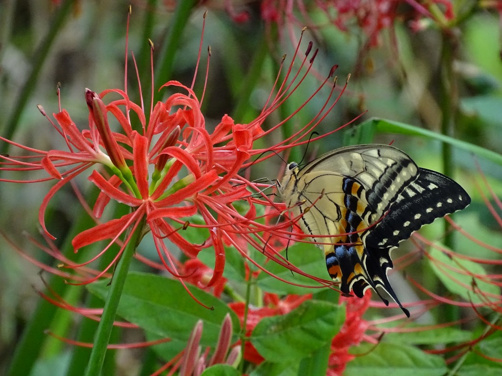 ヒガンバナの花と一緒に、そこに集まるチョウたちの観察も楽しいですよ。
