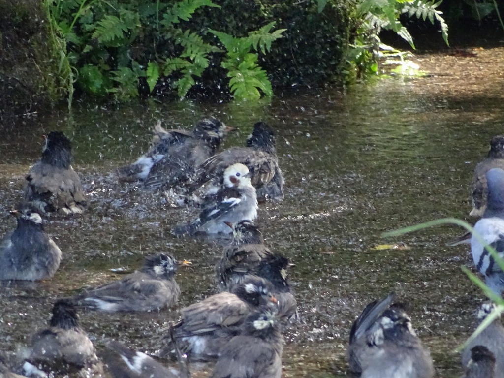 ムクドリよりも白っぽく、少し小柄です。○○を探せ!ではないですが、ムクドリの群れを見つけたら、コムクドリを探してみるのもおもしろいですよ。