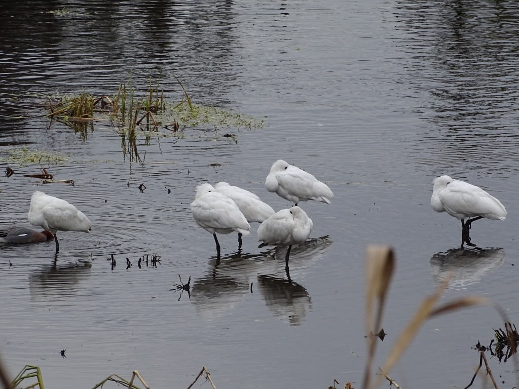 江津湖のクロツラヘラサギ、今年は多い時で6羽確認できます。例年よりも多い印象ですね。