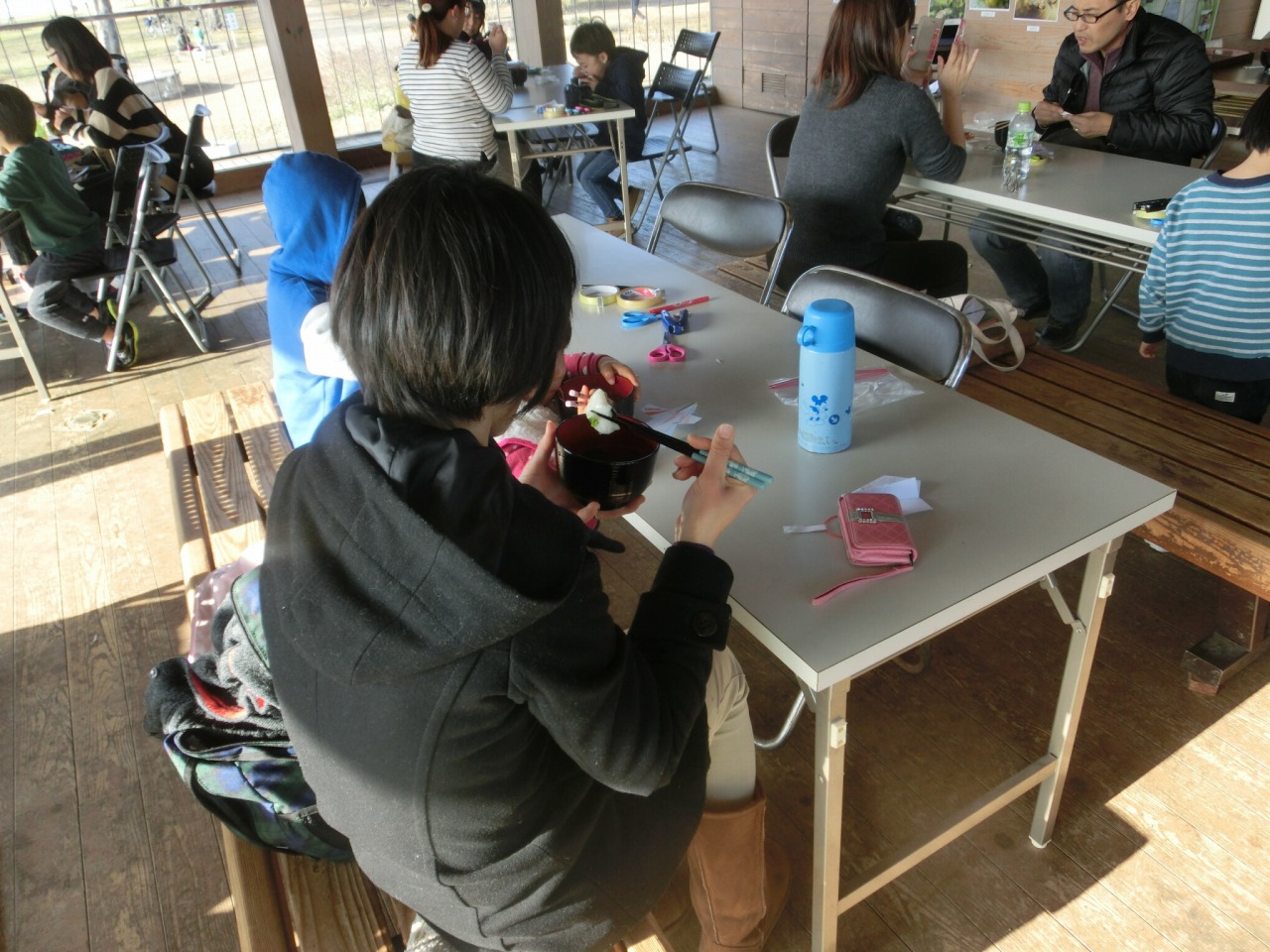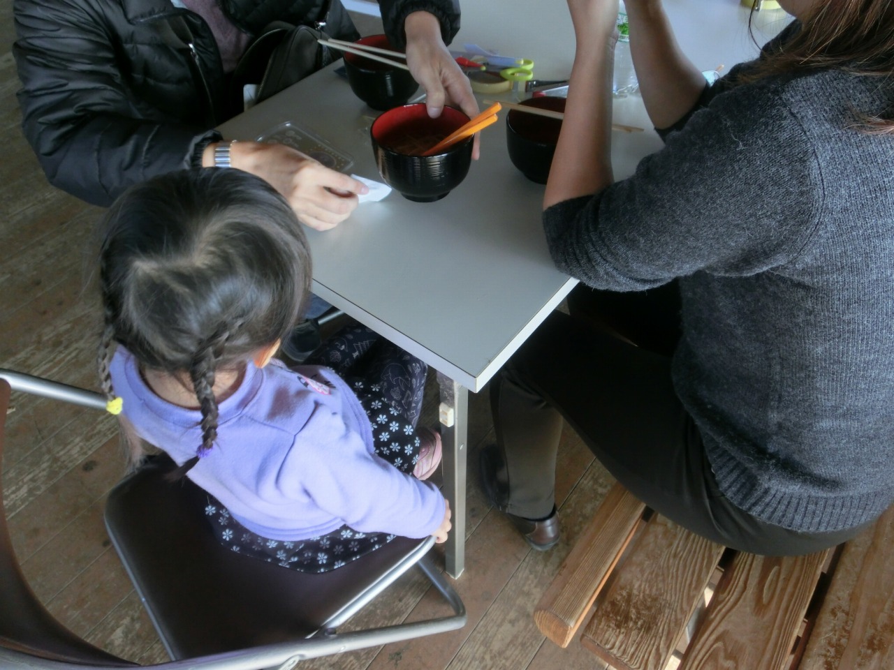 凧上げを楽しんだ後は、冷えた体を温めるためにお雑煮の振る舞いを実施しました。