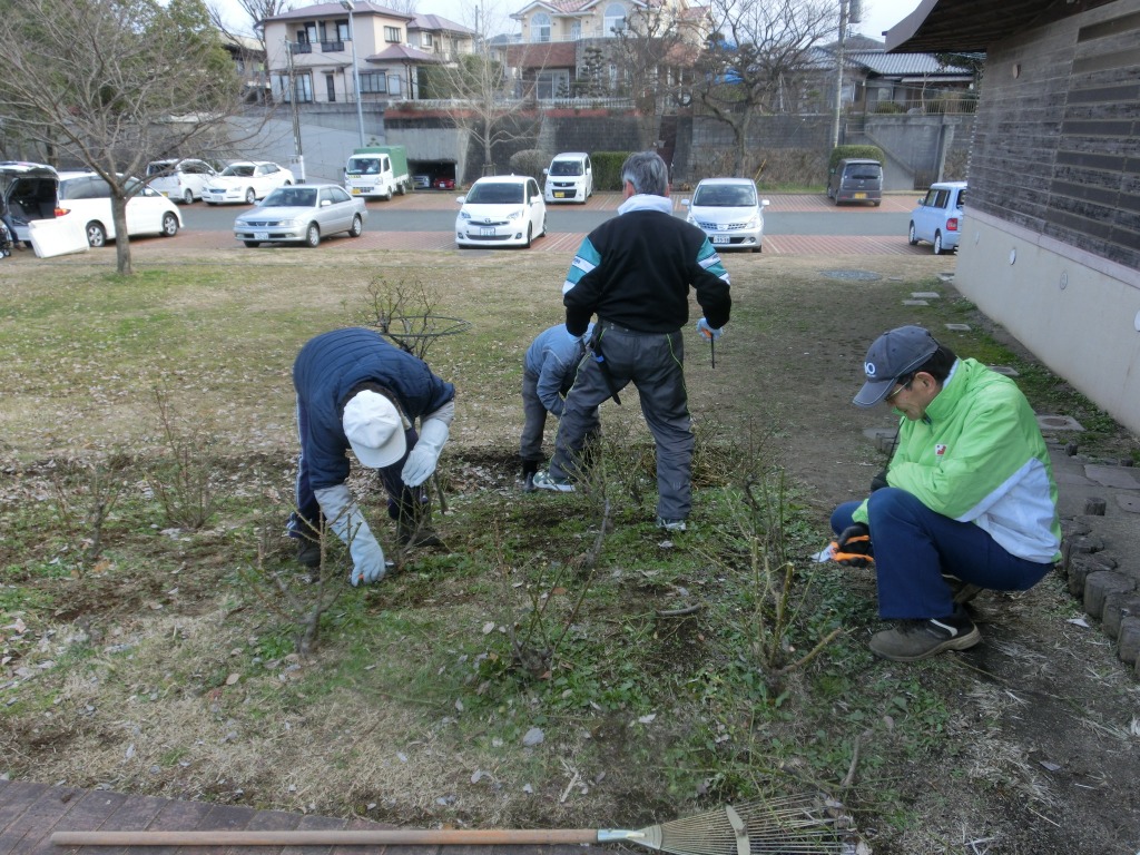 隊友会の皆さまは、去年も剪定を行われています。切り方も理解されていますので、2時間ほどで全てのバラの剪定作業は終了しました。