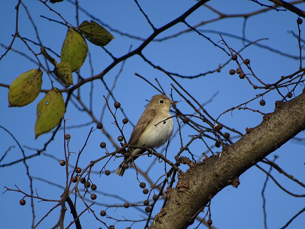 コサメビタキ、コムクドリは秋口の渡り始めの時期に見ることのできた小鳥です。コサメビタキは12月にも観察でき、話題となりました。