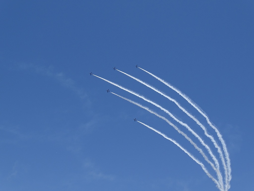 熊本地震から1年がたちました。江津湖も復旧工事が始まり復興の力を感じていましたが、今日のブルーインパルスからもいろいろな強さをもらった気がします。
