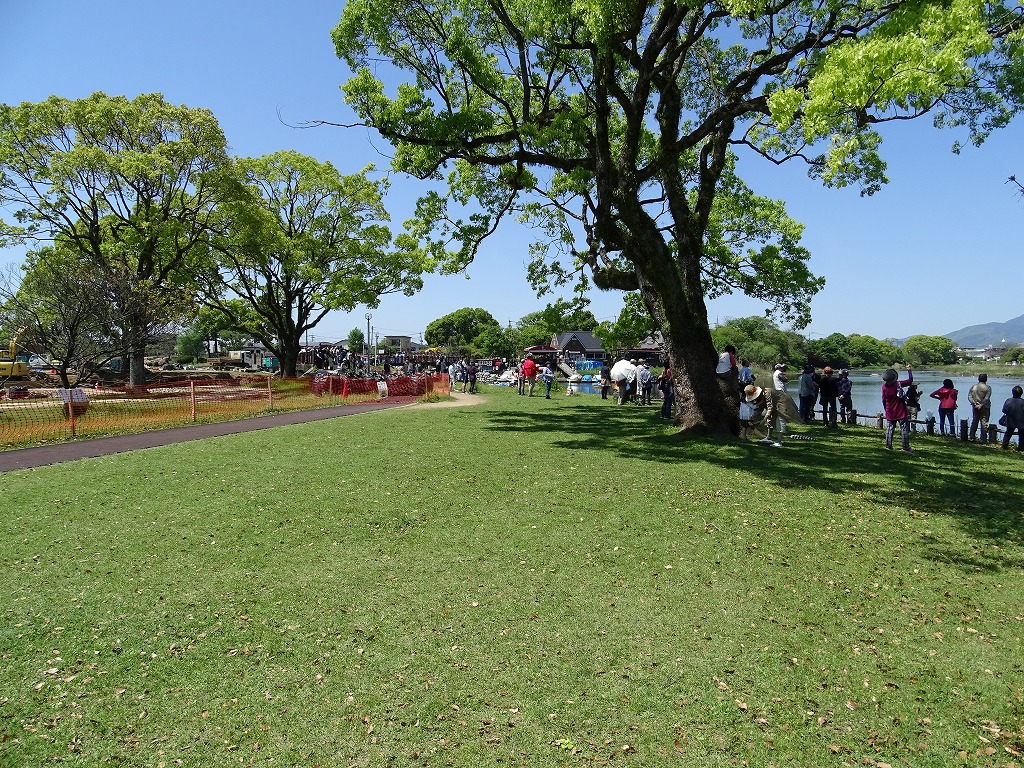 メイン会場は熊本城二の丸広場となっていますが、大勢の人を避けゆっくり見るために、江津湖を訪れる人も多くいらっしゃいました。