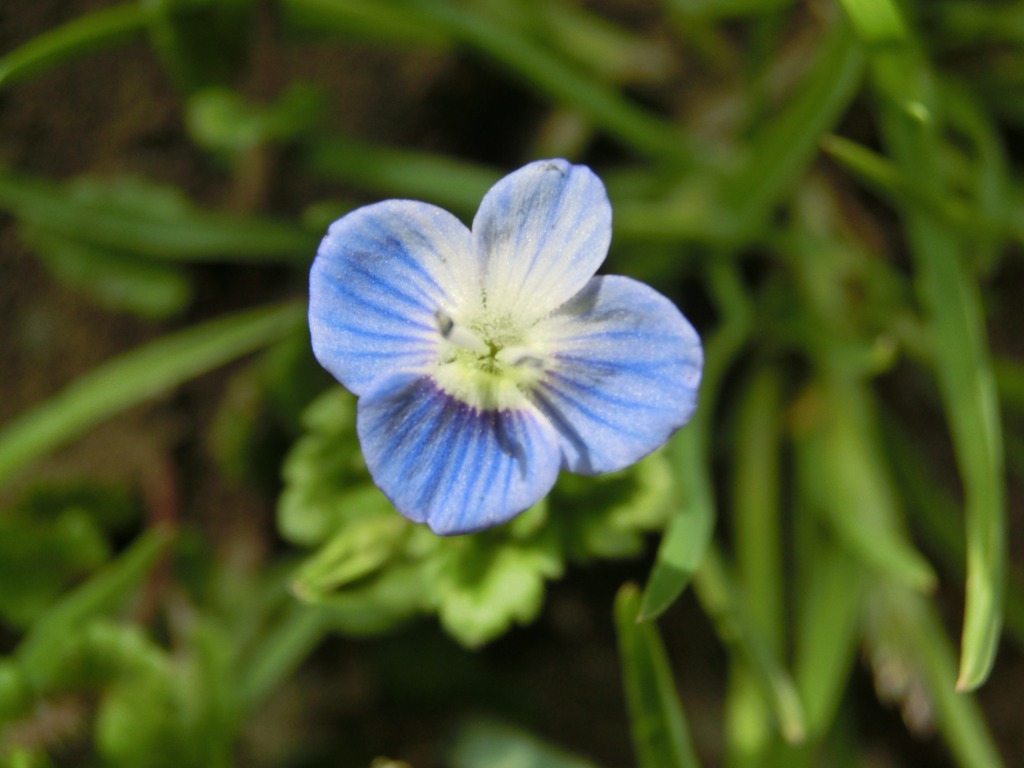草の緑色の中では際だって目立つ青色がステキです。花言葉は、『信頼』。