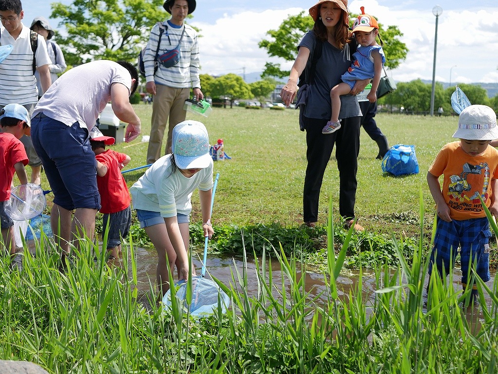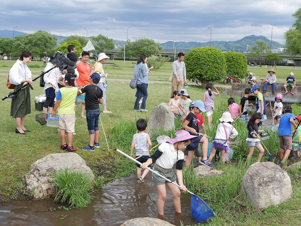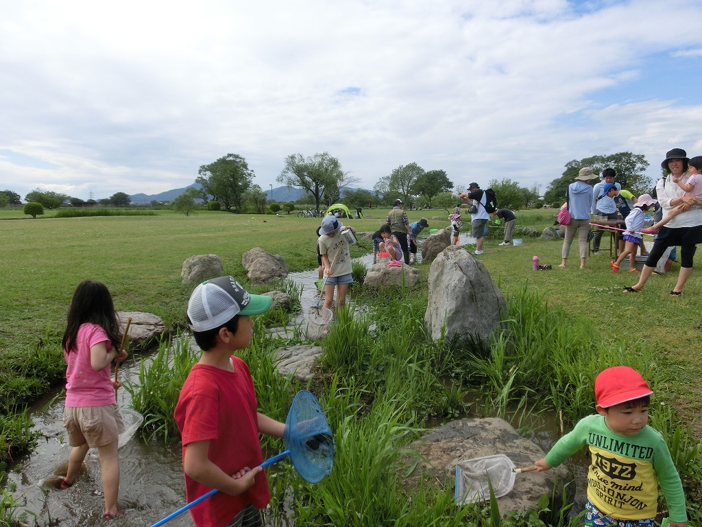 今日はこどもの日。広木地区で子どもたちに人気のイベント、「水辺の生き物さがし」を実施しました。