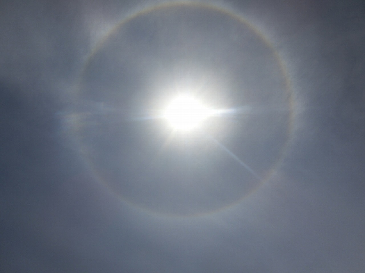 広木地区を巡視していたところ、お昼ごろに園内でこども達が空を眺めていたので、一緒に空を見てみたら珍しい虹を見ることができました。写真のように太陽を囲む虹です。