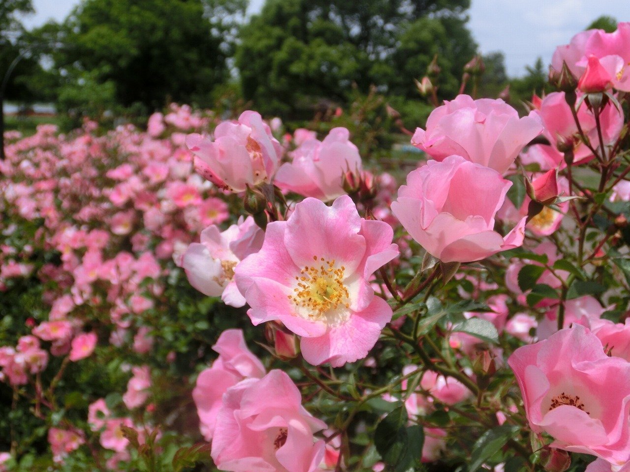 広木地区のバラは花壇の一角にあり、数える程度の本数なので自慢できるほどの量ではありませんが、毎年この時期には美しいピンク色の花々で管理棟を彩ってくれます。