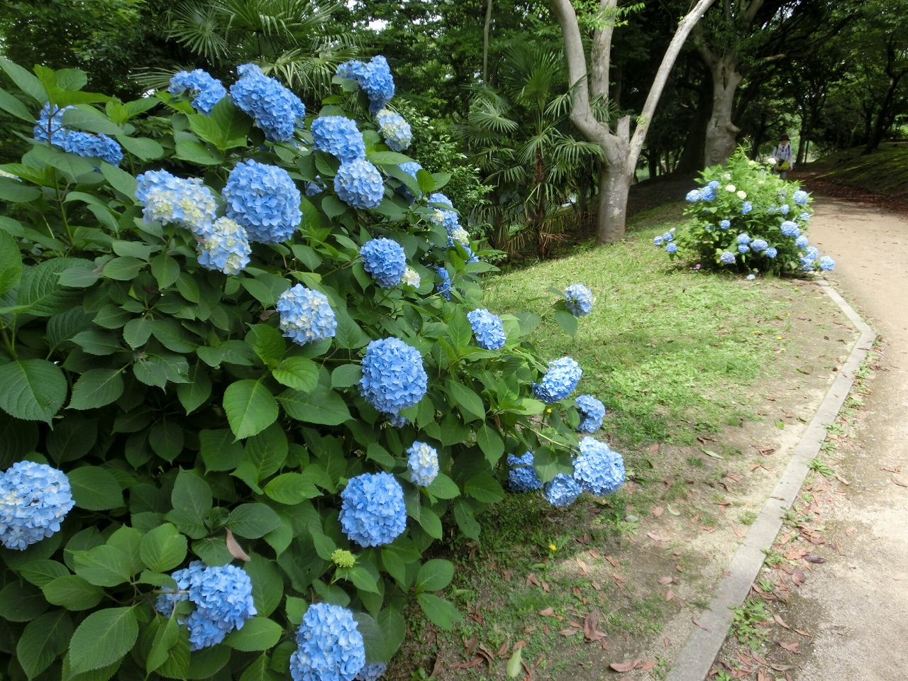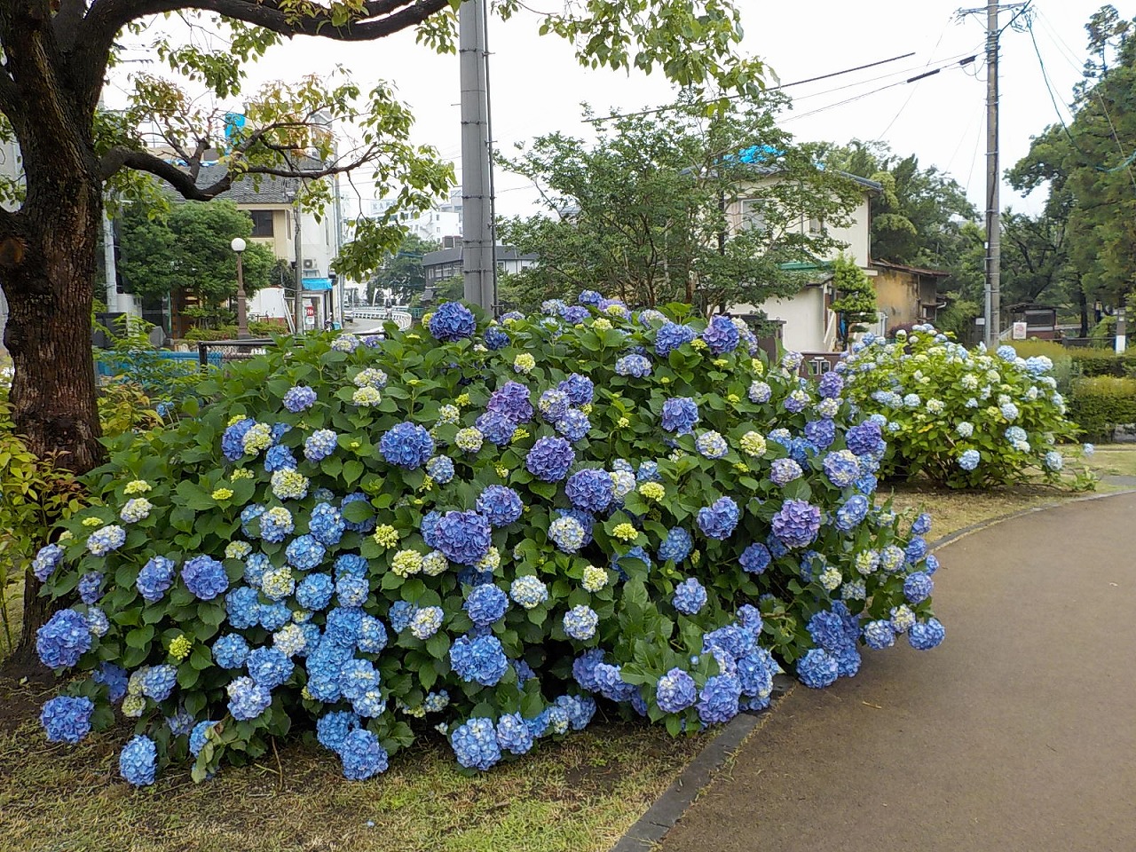 昨年は7月18日ごろ、平年でも7月19日ごろに梅雨明けを迎えているようですので、約6週間ほど続きそうです。これからの季節の江津湖はアジサイがおすすめです。画図橋から江津斎藤橋にかけての遊歩道や、市電通り沿い旧体育館広場など、様々なところで少しずつご覧いただけるようになってくると思います。