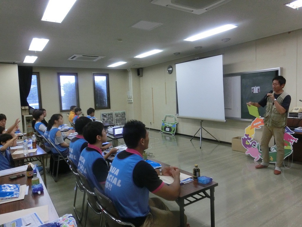 今日は、AQUA SOCIAL FES !!「外来種から、江津湖固有の植物を守ろう!」と題しまして、熊本日日新聞社主催の外来水草の除去のボランティア活動が江津湖で行われる予定でしたが、朝からあいにくの大雨…。ということで、水草除去ボランティア活動は中止となり、江津湖に隣接します東部浄化センターで環境の勉強会が行われました。