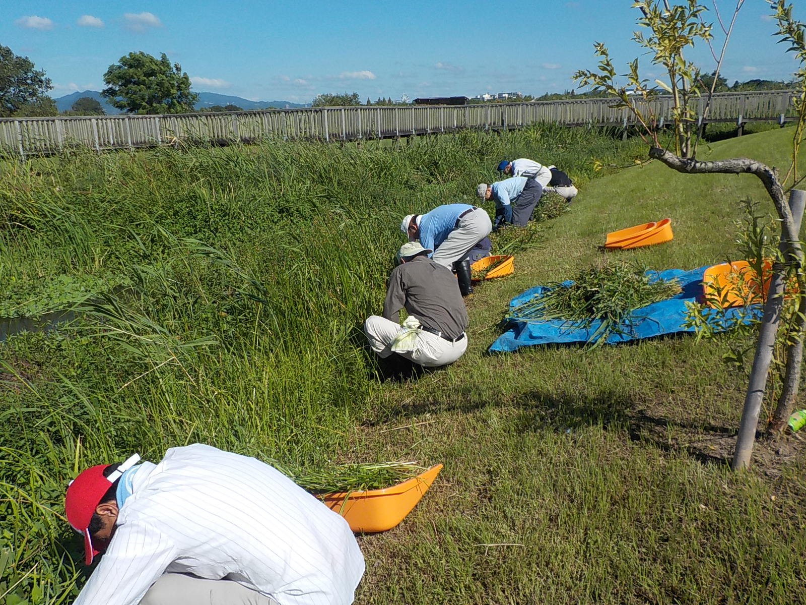 夏の間雑草の繁殖力が非常に強く、ミズアオイを覆いつくしていました。それらを除去し、少しでもミズアオイの姿を見せることができたらと思い活動しました。