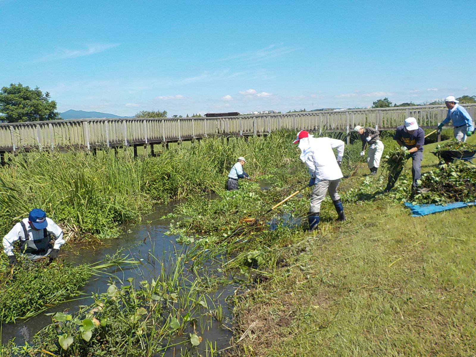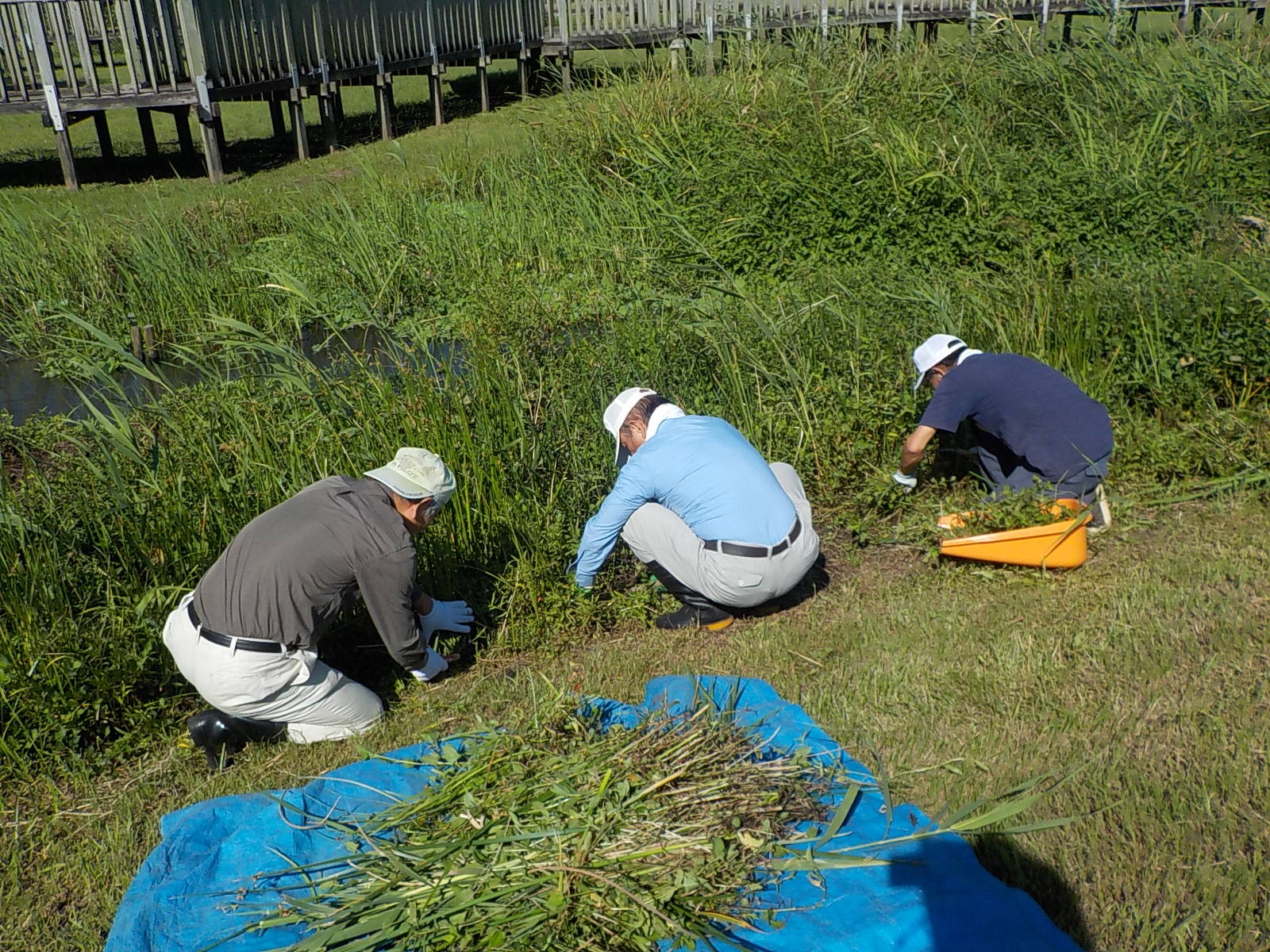 今日は、もうすぐ見頃となるミズアオイの保全活動を行いました。