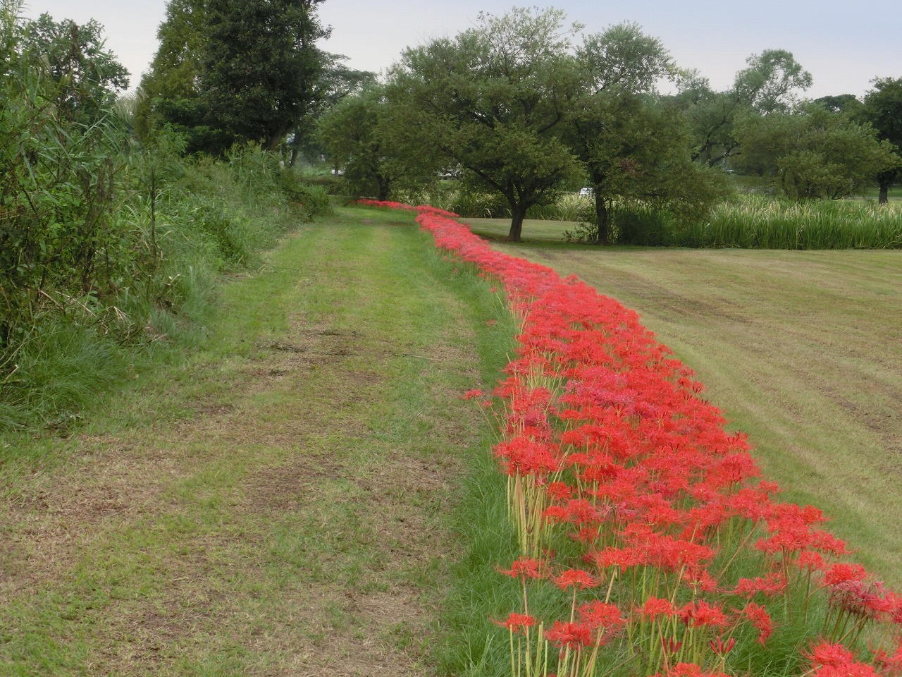 そんなお彼岸に合わせるかのように、広木地区の湖岸沿いの園路では彼岸花が見ごろを迎えています。