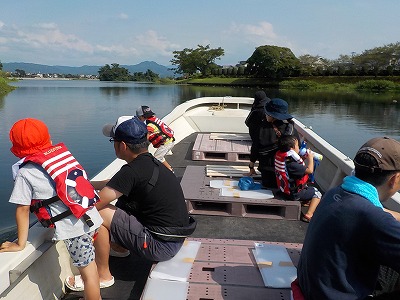 水上クルーズは、みなも祭りの時だけしか楽しめない、船の上から江津湖を見ることができる体験イベントとなっています。今日は気温のわりに日差しが強く、とても暑く感じますが船の上は心地よい風を感じることができます。