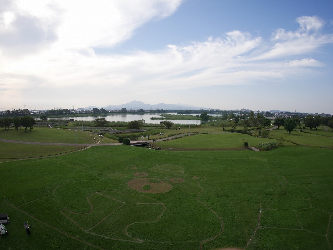 また、会場では高所作業車に乗ることもでき、地上絵だけでなく江津湖の雄大な景色も上から見ることができます。