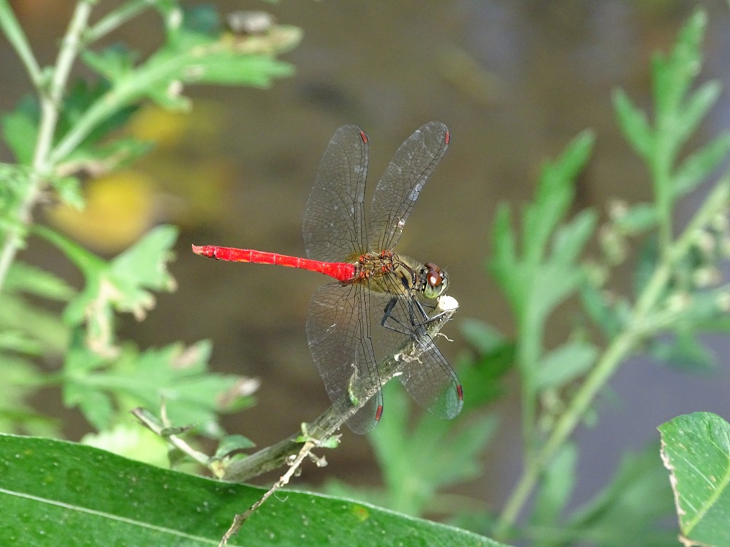 江津湖でよく見かけるアカトンボ、マユタテアカネです。