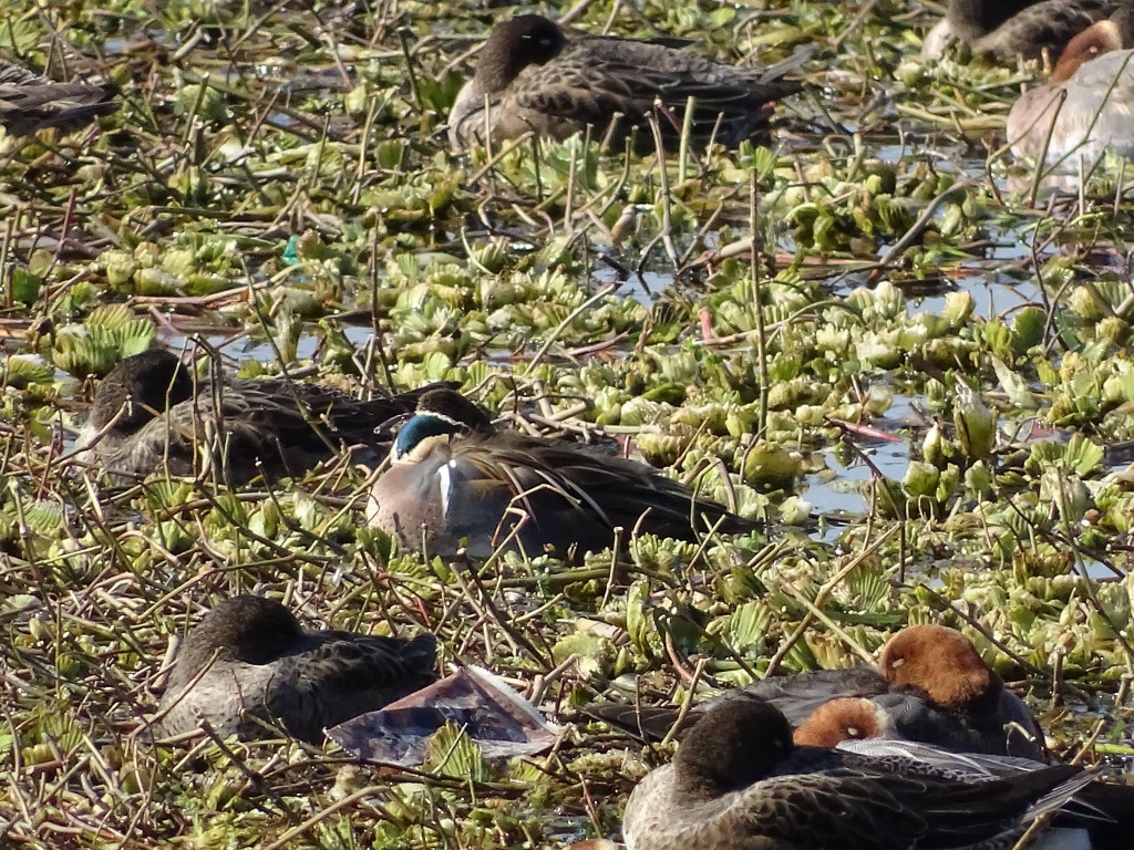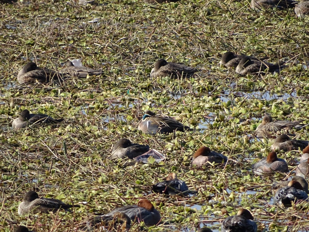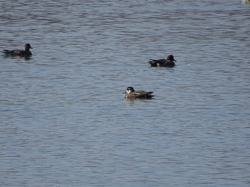 上の写真で分かるでしょうか。頭が少し緑色に光っているのがトモエガモです。