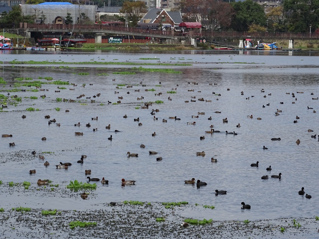 江津湖でよく見かけるカモ6種です。カルガモは留鳥ですので今後も見ることができると思います。