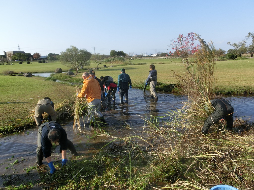 主に水路や池の中の外来水草の除去作業を行っていただきました。