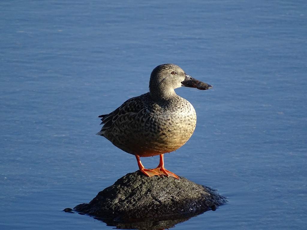 江津湖で見ることのできるカモ、ハシビロガモです。