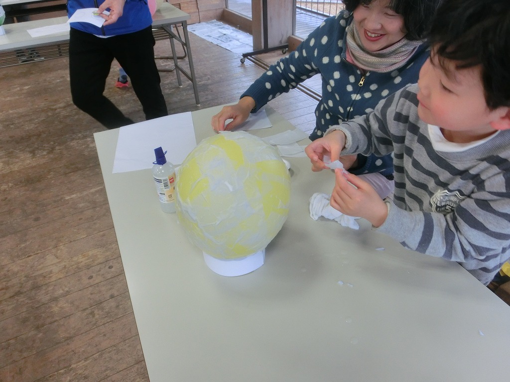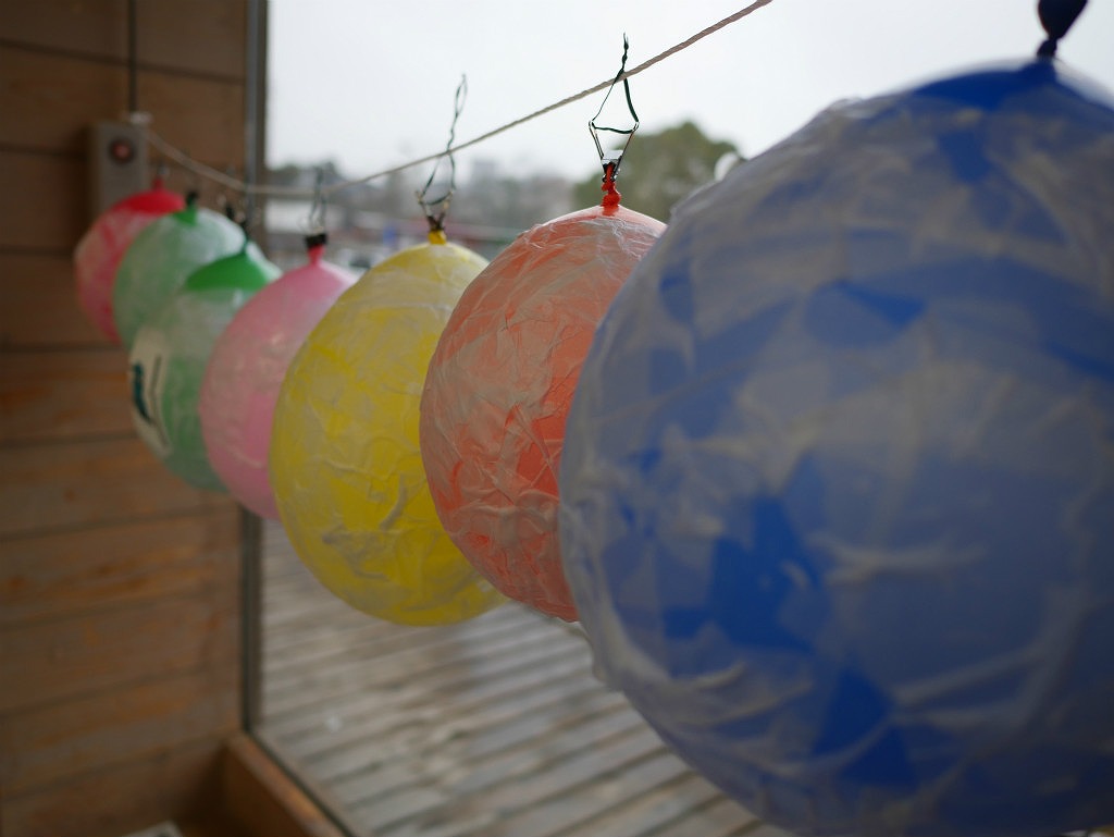 2月24日に水前寺成趣園をメイン会場として行われる「水前寺こいあかり」内で、旧体育館跡地をサテライト会場としてキャンドルの灯りで彩ります。そこに今日つくっていただいた風船灯篭を展示する予定です。