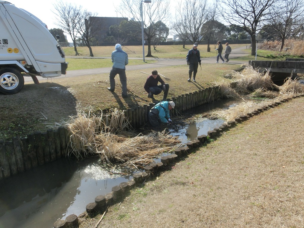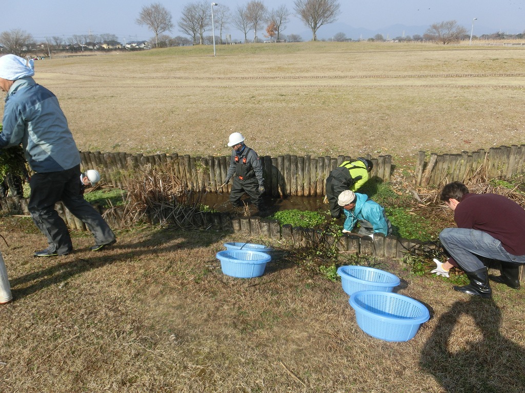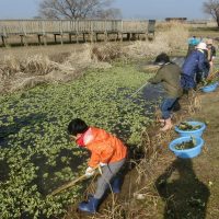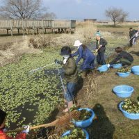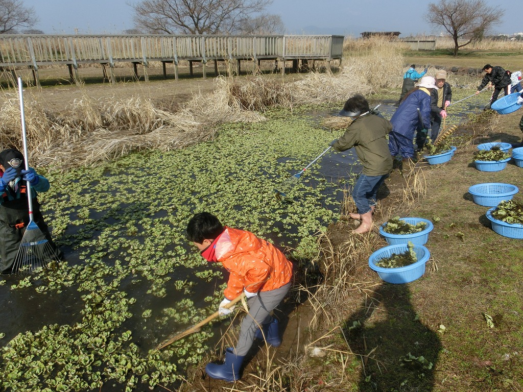 なぜこの寒い冬の時期に作業を行うかというと、ウォータレタスは冬場は葉のサイズが小さく、繁殖力が弱いので、除去するには打って付けなのです。