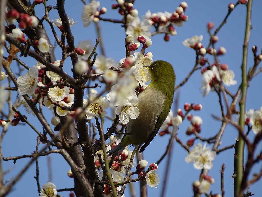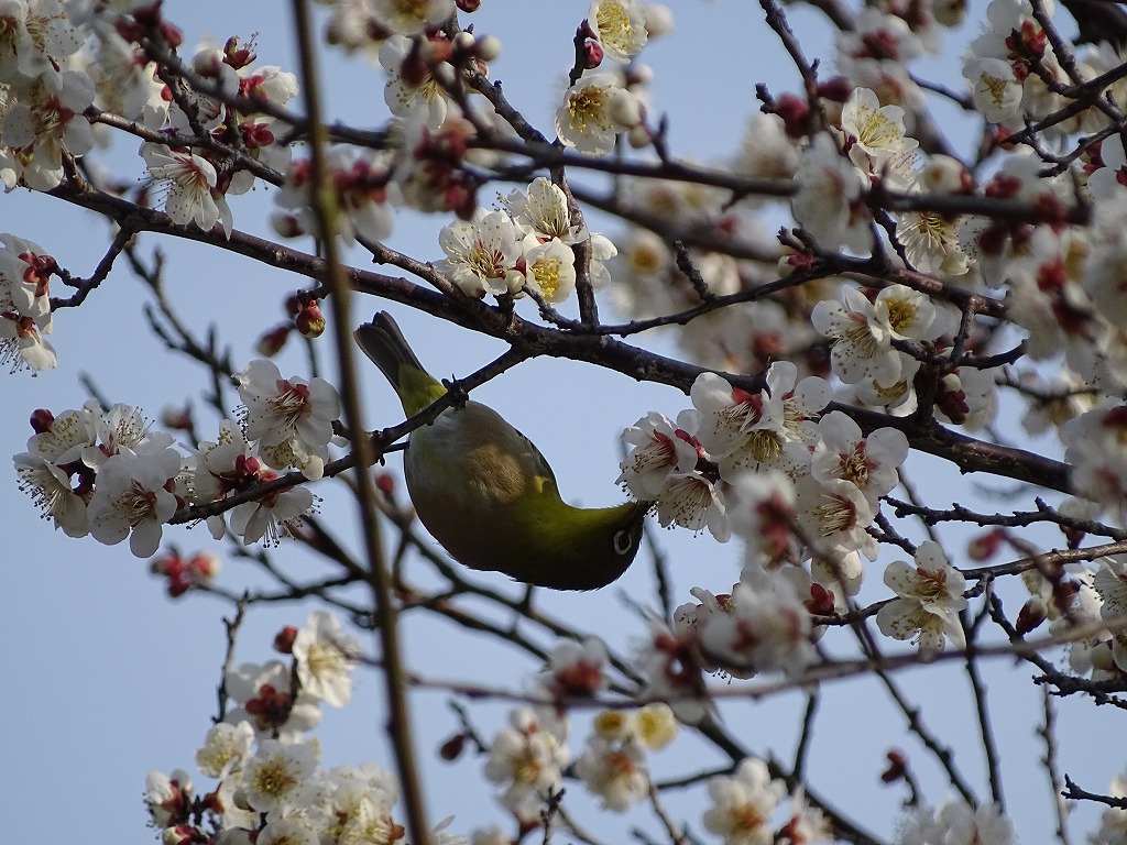 ウメとメジロを撮った場所は今満開のようです。出水地区のトイレがある広場の奥にあるところです。