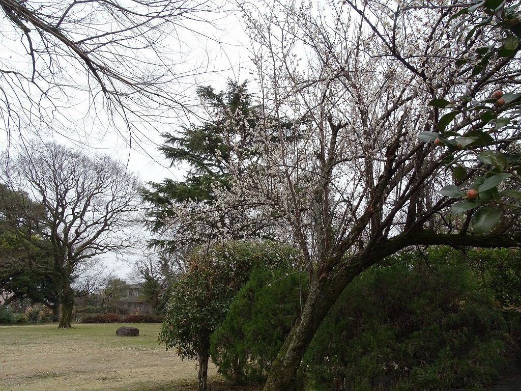 園内には今満開のウメとこれから咲くであろうウメがあるようです。以前のブログを見直してみると、以前は今頃満開の場所が、今日はまだまだツボミの状態でした。今年度の冬はそれだけ寒かったのでしょうか。