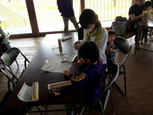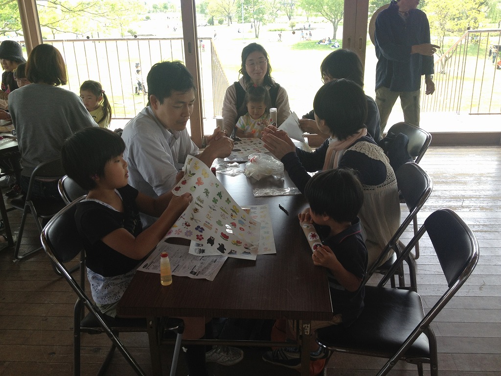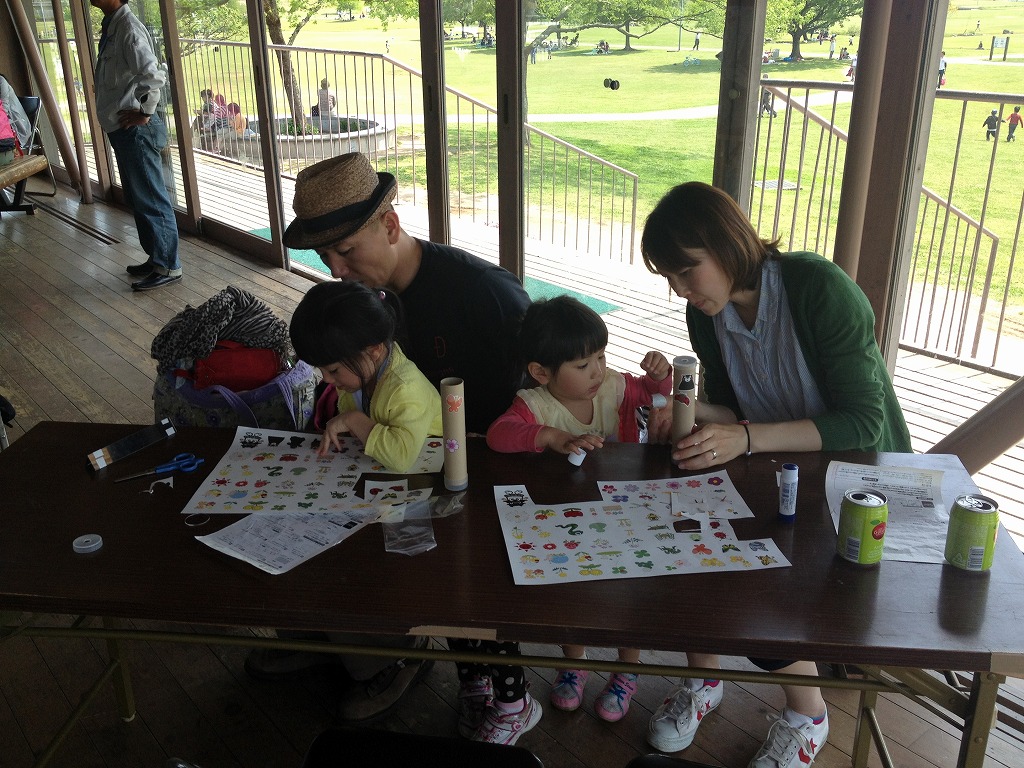 三面の合わせ鏡をそろえて、筒に入れて、その人自分だけの万華鏡なので模様や目印をつけて、公園に出発です。