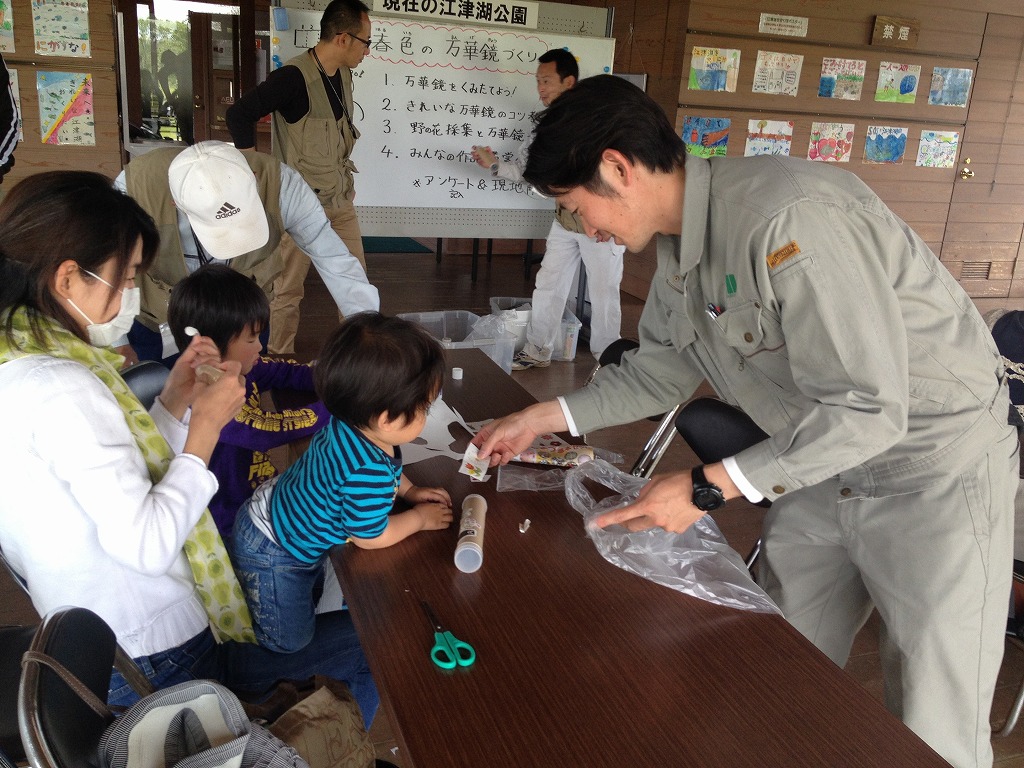 本日のイベントは春の野草を使って、美しく写し出す万華鏡を作ろう、というもの。