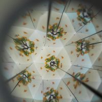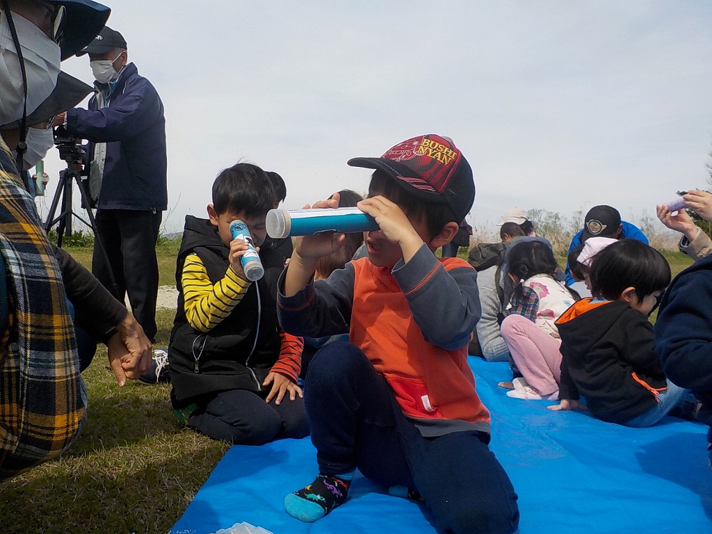 「春をさがす」といっても、普通に外に出て花や虫などをさがしてもおもしろくありません。今日は万華鏡をつかって、江津湖の春をさがしてみます。