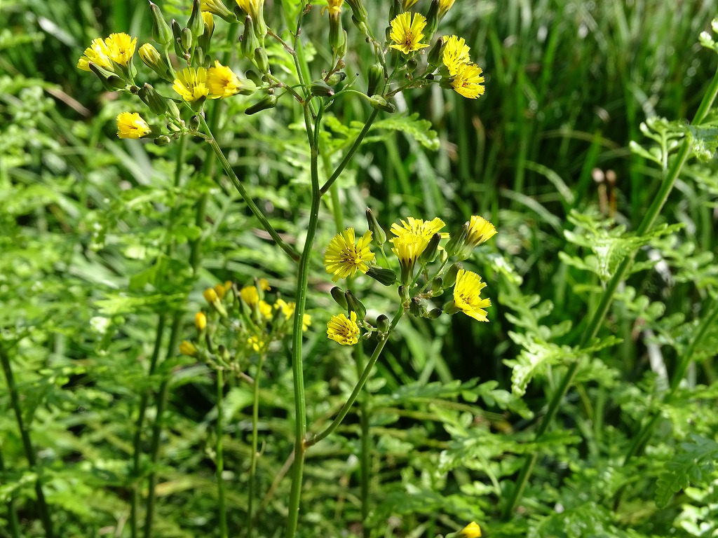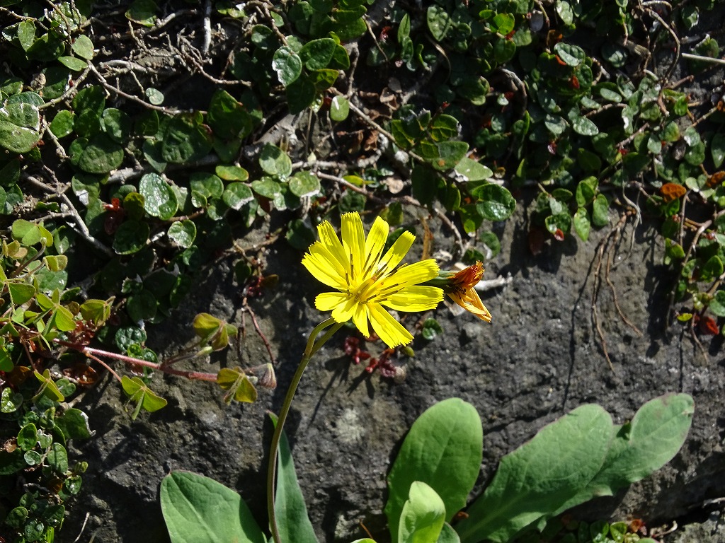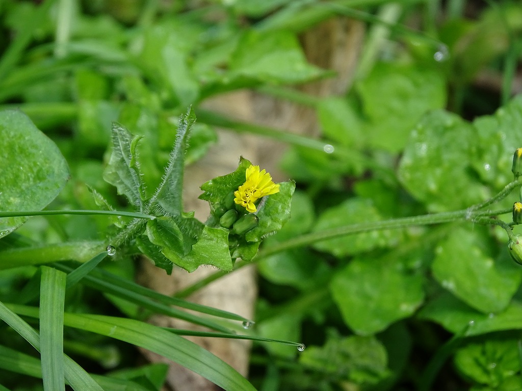 オニタビラコとヤブタビラコ。花だけ見ると非常に似ていますが、ヤブタビラコは地表を這うように花をつけますので、区別はつくと思います。