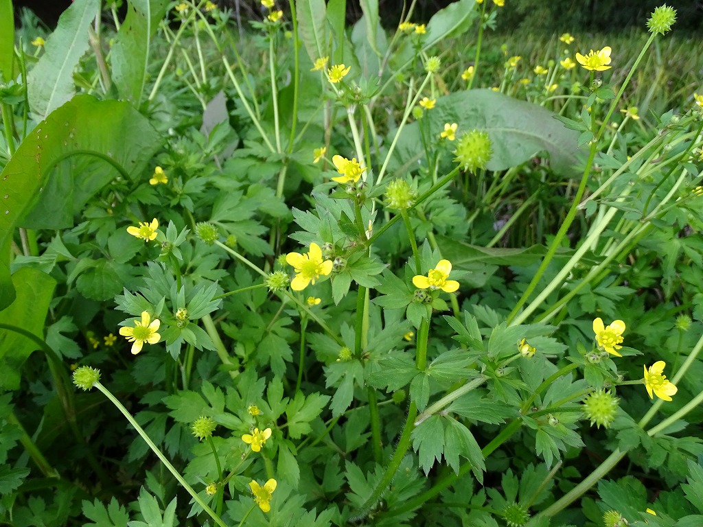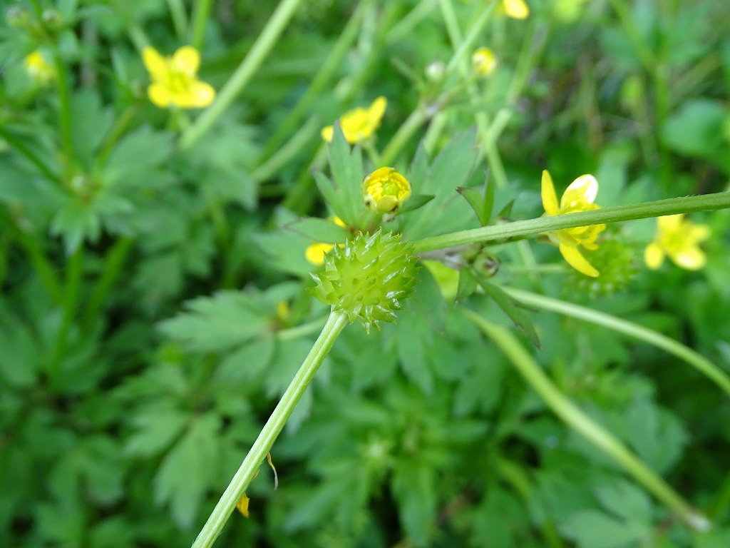 花だけ見ると非常に似ていますが、名前からも分かるように、ケキツネノボタンには茎に毛が多く生えています。
