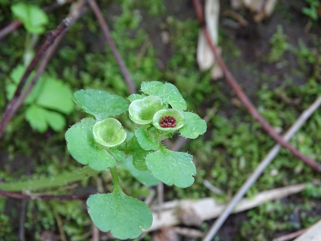 3月に入った頃、ヤマネコノメソウの花を見かけました。4月に入った頃、それが種をつけ始めましたが、種の付け方がおもしろいので紹介します。
