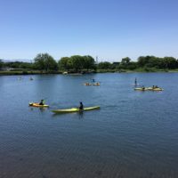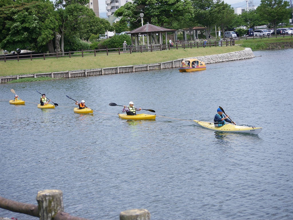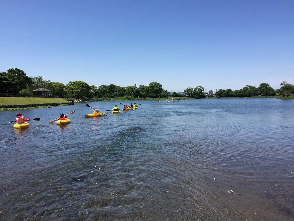 天気も良く、湖面の上は気持ちよかったと思います。湖面の上から見る江津湖は、いつもと違う景色だったのではないでしょうか。カヌーに乗りながら魚の群も見れたようでしたよ。少しでも江津湖の自然に興味を持っていただけたら幸いです。