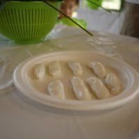 ねる作業、包む作業が終わったら、1束にして熱湯で7分ほど茹でていきます。